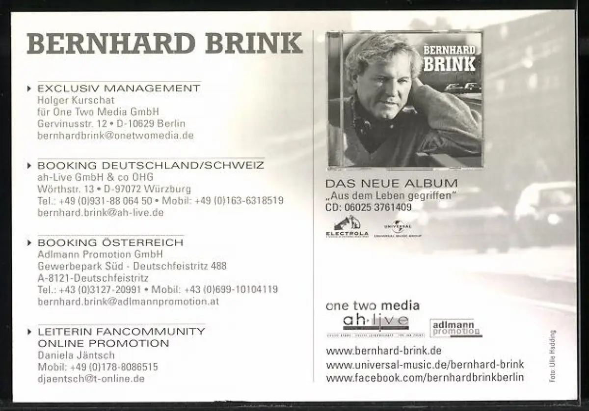 AK Musiker Bernhard Brink im Gegenlicht, Autograph