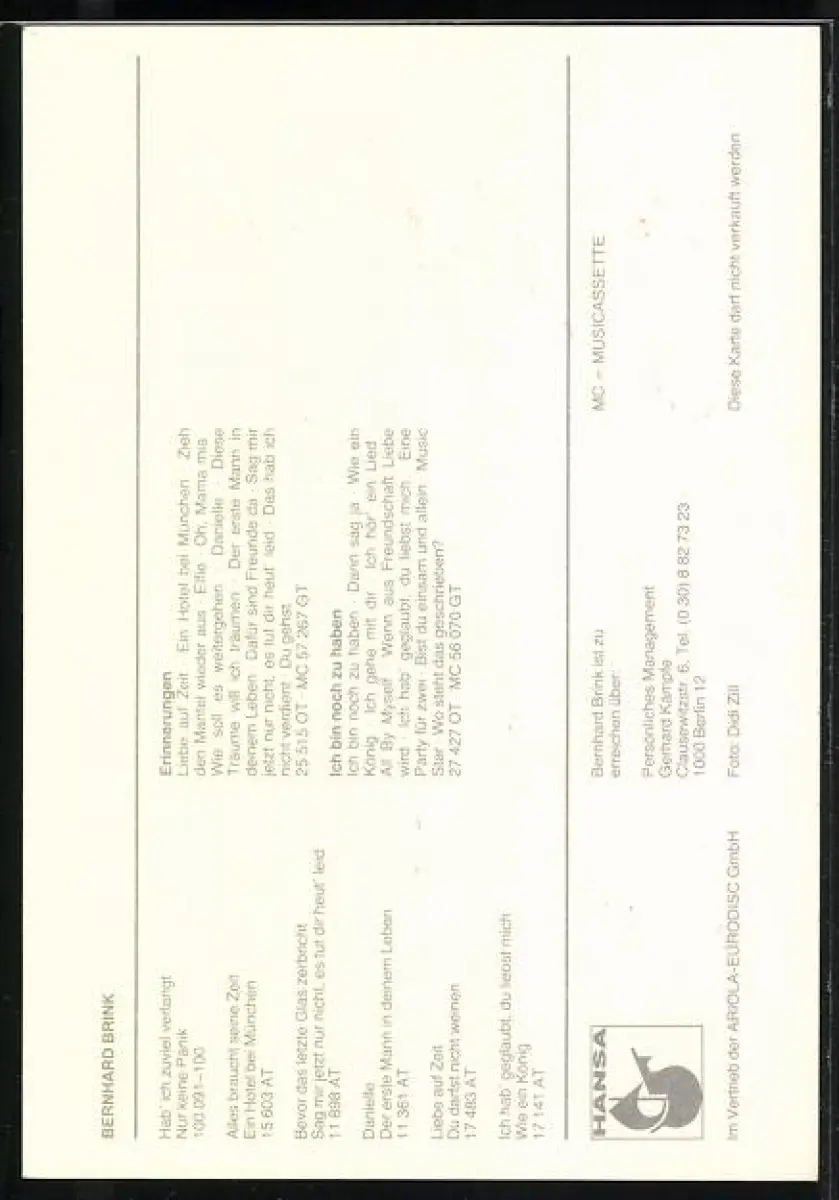 AK Musiker Bernhard Brink in die Kamera blickend, Autograph