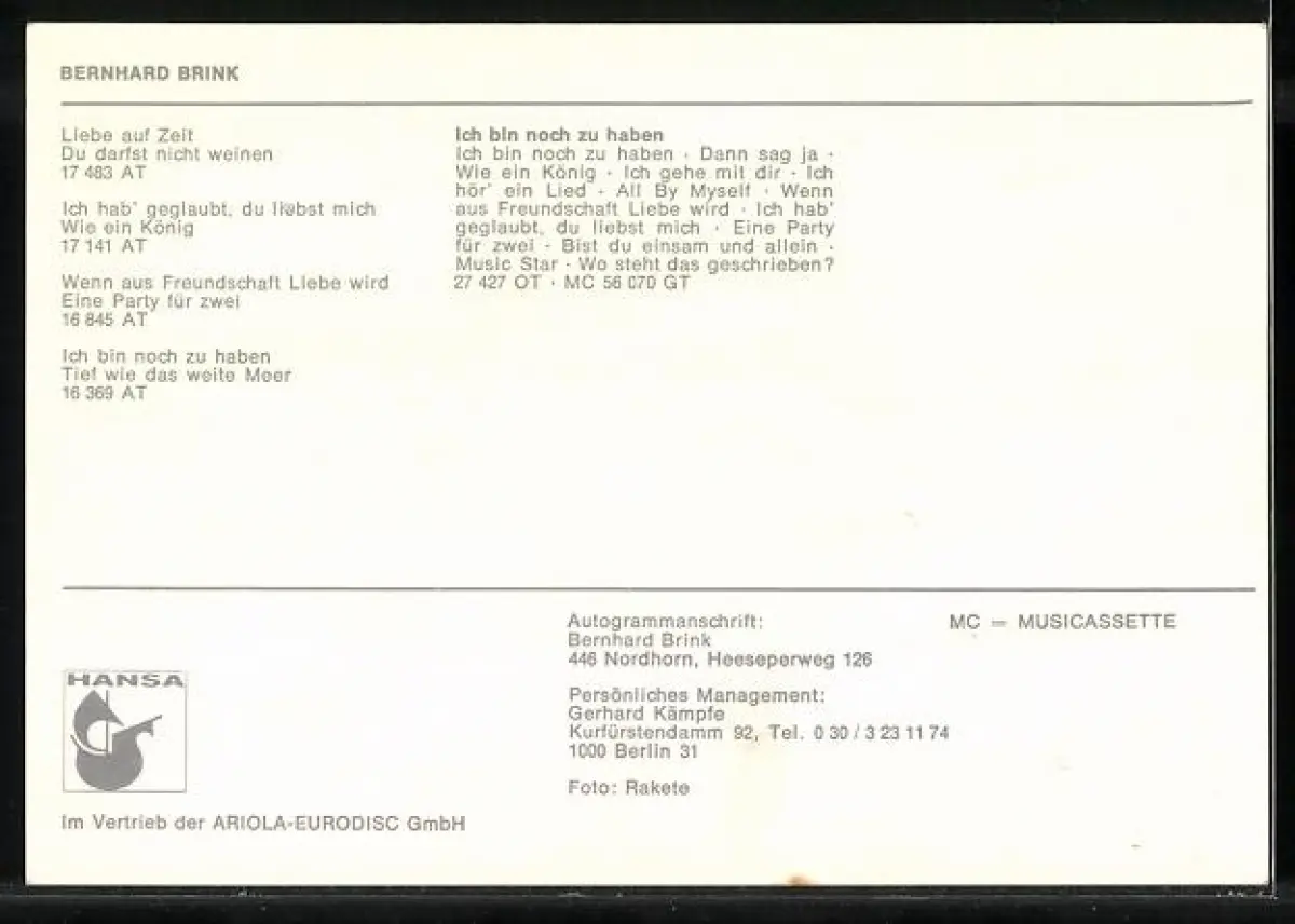 AK Musiker Bernhard Brink mit Pullover und Hemd, Autograph