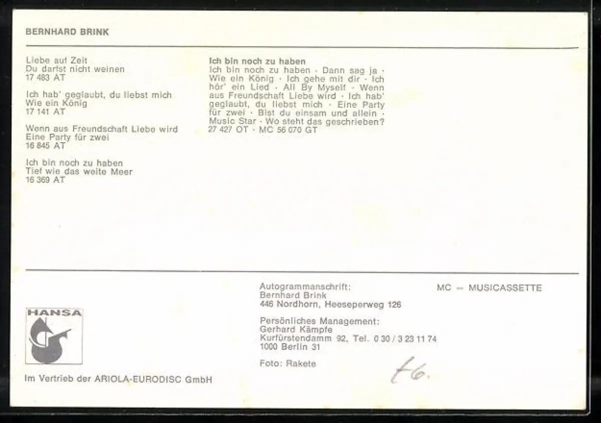 AK Musiker Bernhard Brink mit Pullover und Hemd, Autograph