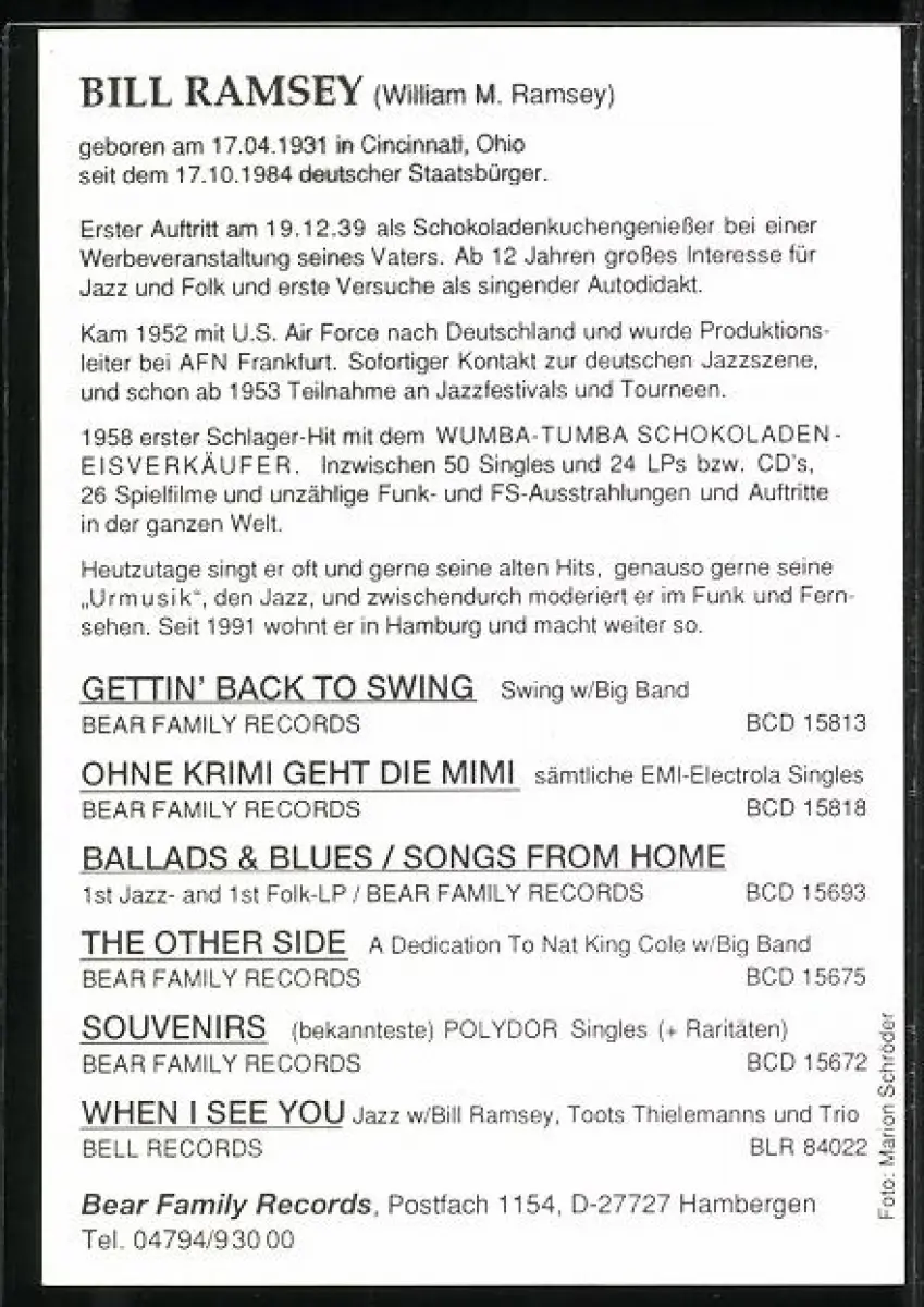 AK Musiker Bill Ramsey lächelnd im Porträt, Autograph