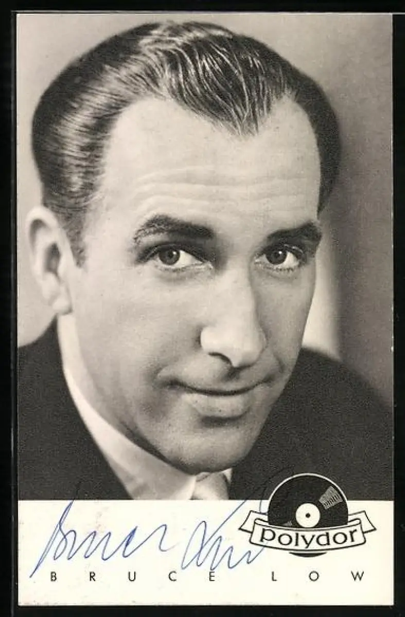 AK Musiker Bruce Low in die Kamera schauend, Autograph