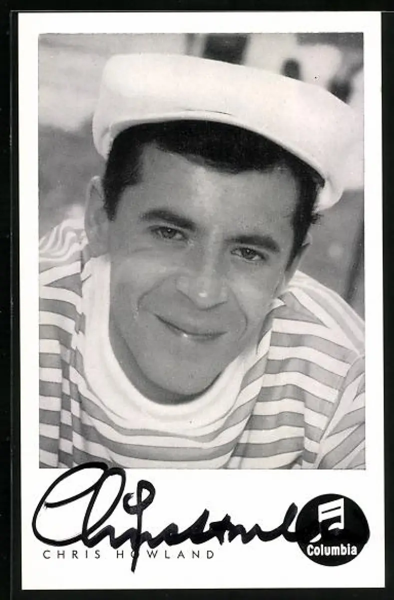AK Musiker Chris Howland im gestreiften Hemd und weissem Hut, Musiker
