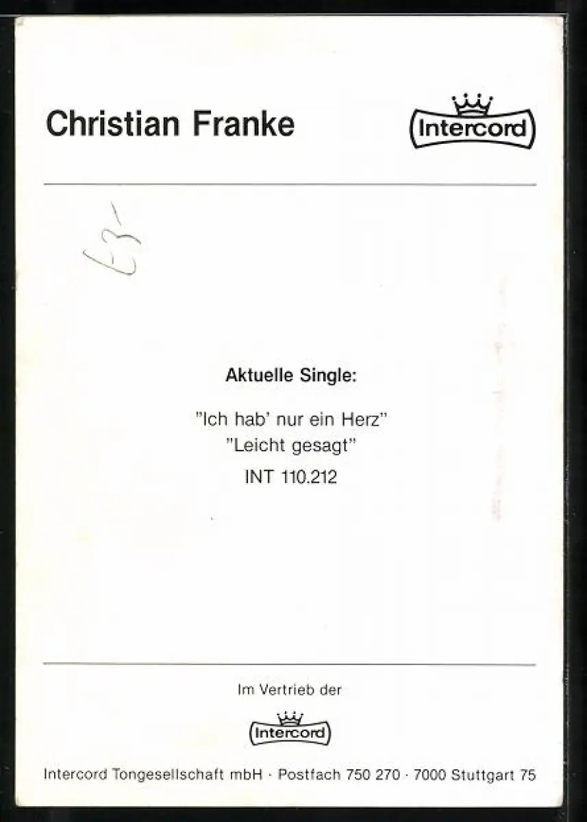 AK Musiker Christian Franke im Porträt mit Autograph