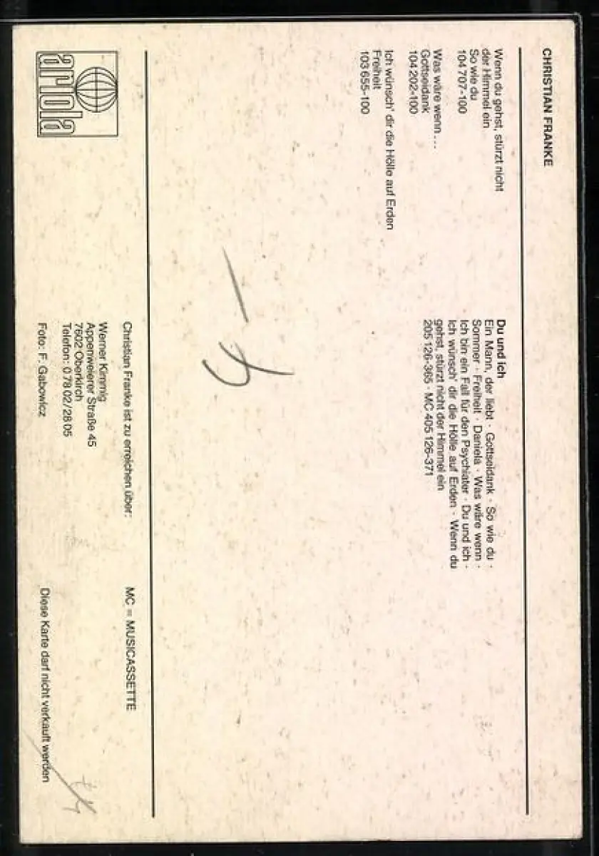 AK Musiker Christian Franke in Lederjacke, Autograph