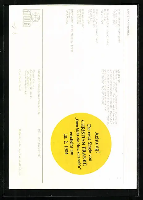 AK Musiker Christian Franke lächelt in die Kamera, Autograph
