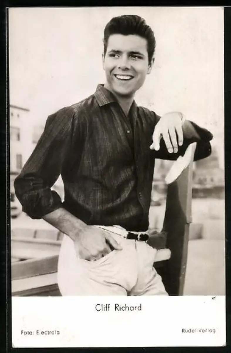 AK Musiker Cliff Richard in einem dunklen Hemd und heller Hose
