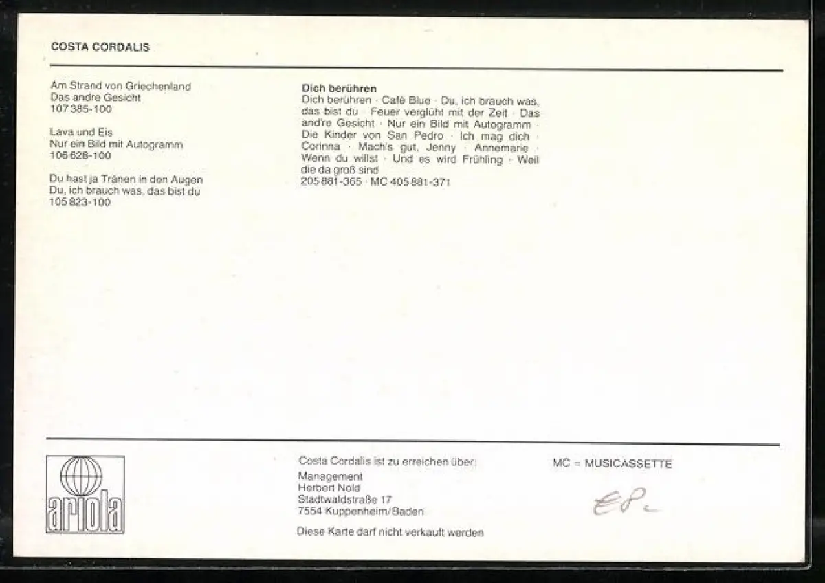 AK Musiker Costa Cordalis am Strand mit Mandoline, Autograph