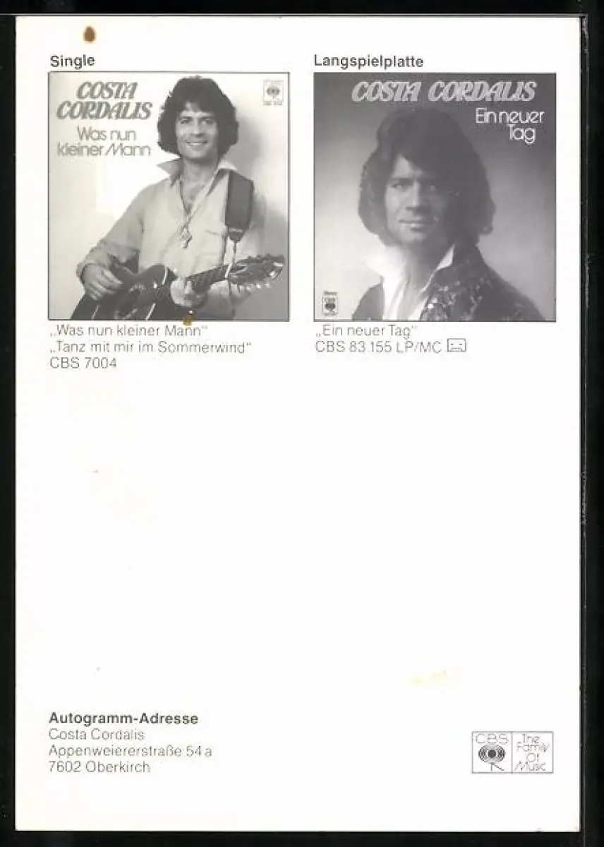 AK Musiker Costa Cordalis im Porträt, Autograph