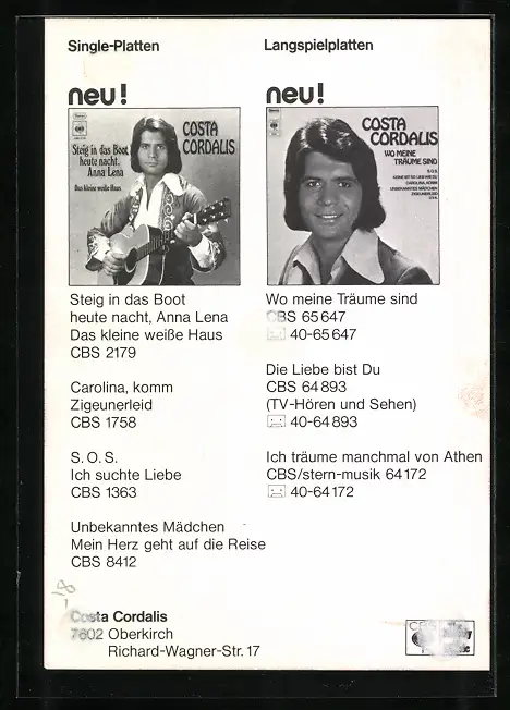 AK Musiker Costa Cordalis mit Gitarre, Autograph