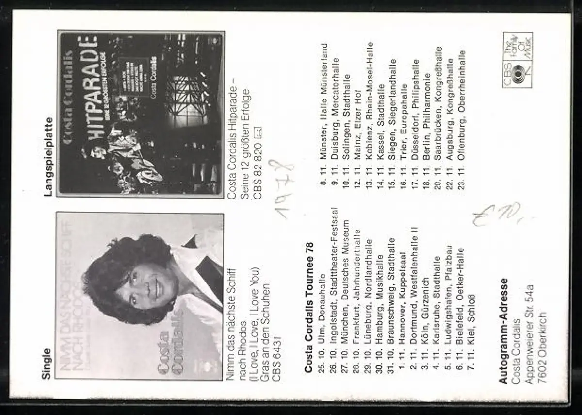 AK Musiker Costa Cordalis mit Gitarre am Mikrophon, Autograph
