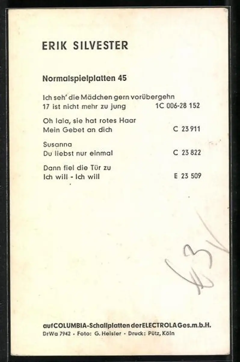 AK Musiker Erik Silvester im Porträt, Autograph