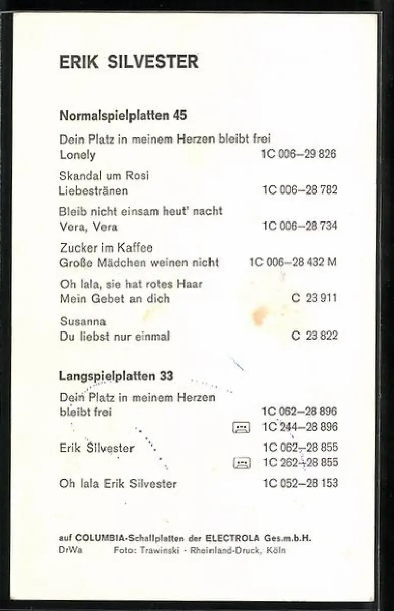 AK Musiker Erik Silvester mit freundlichem Lächeln, Autograph