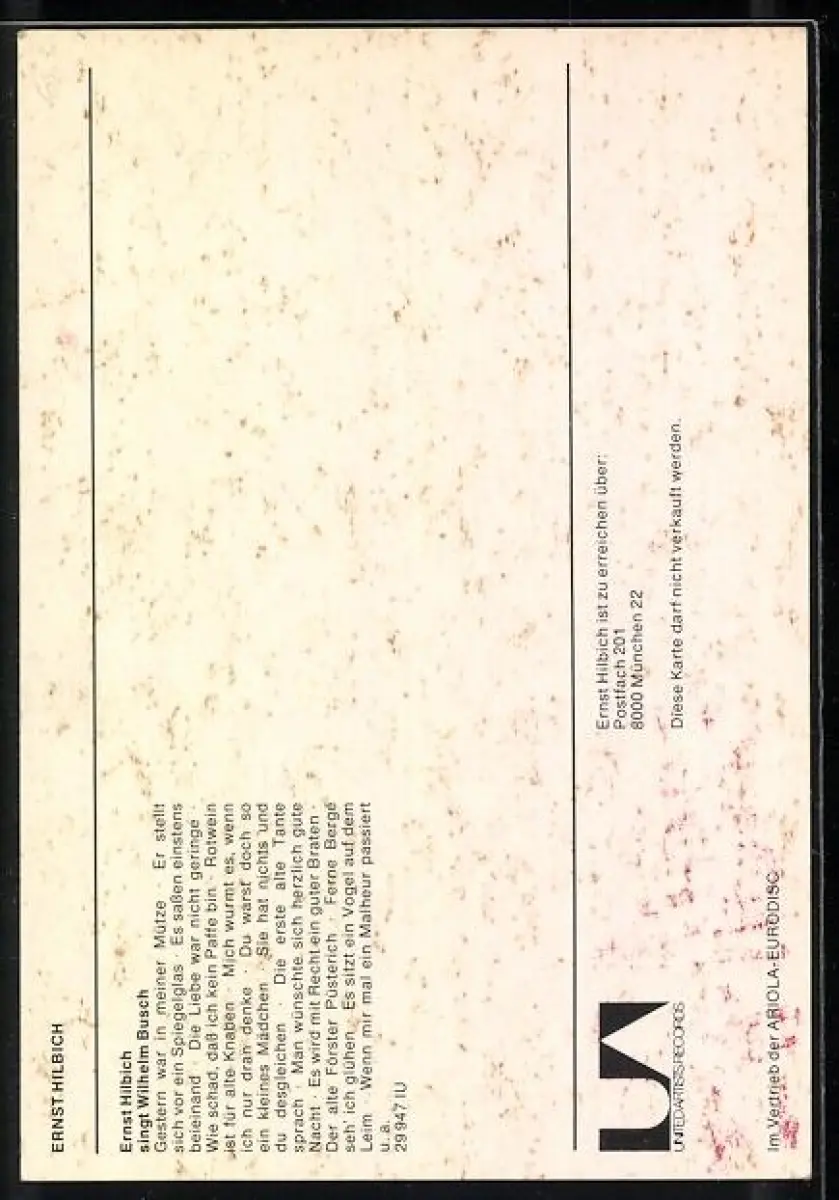 AK Musiker Ernst Hilbich mit Hut, Autograph