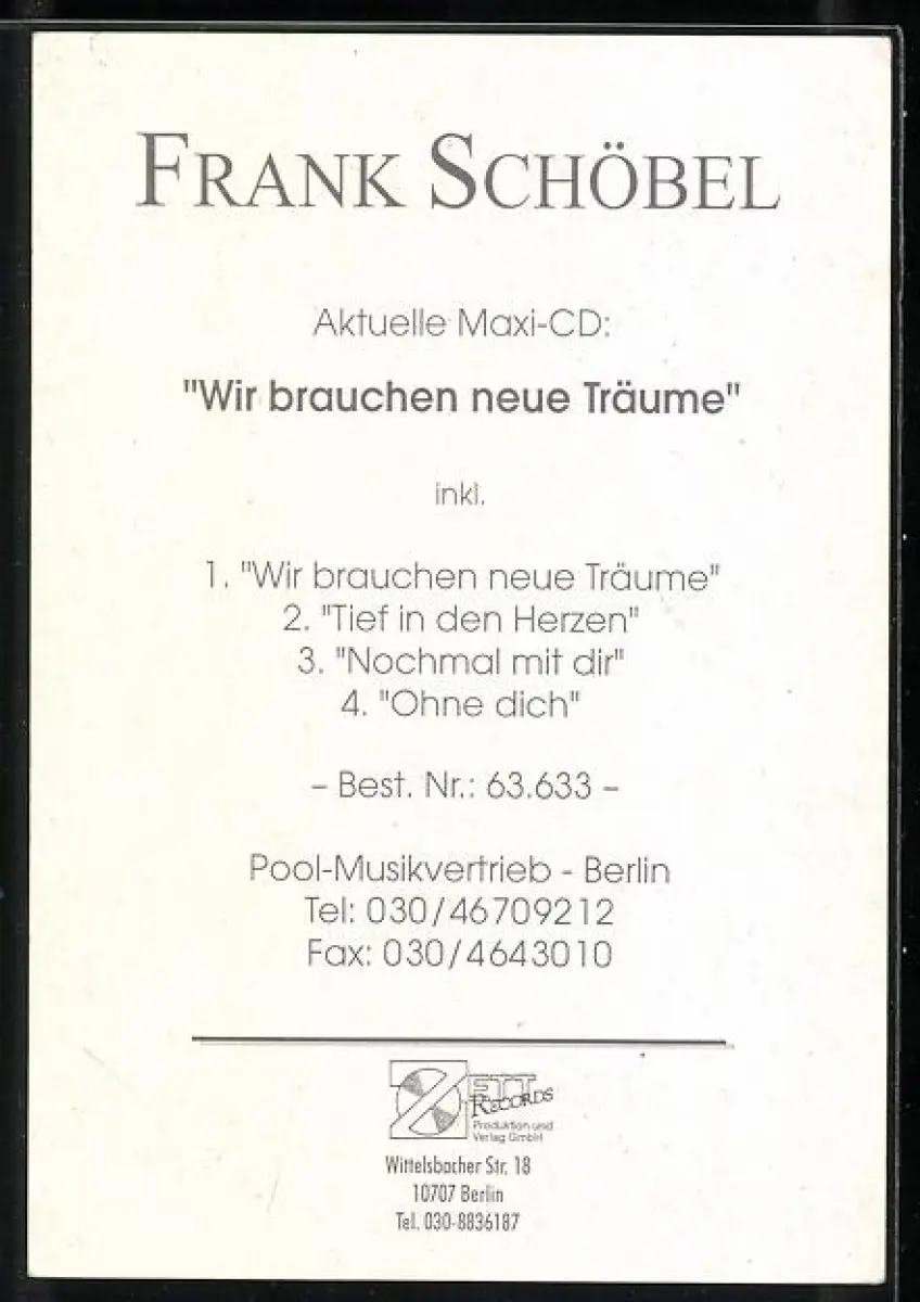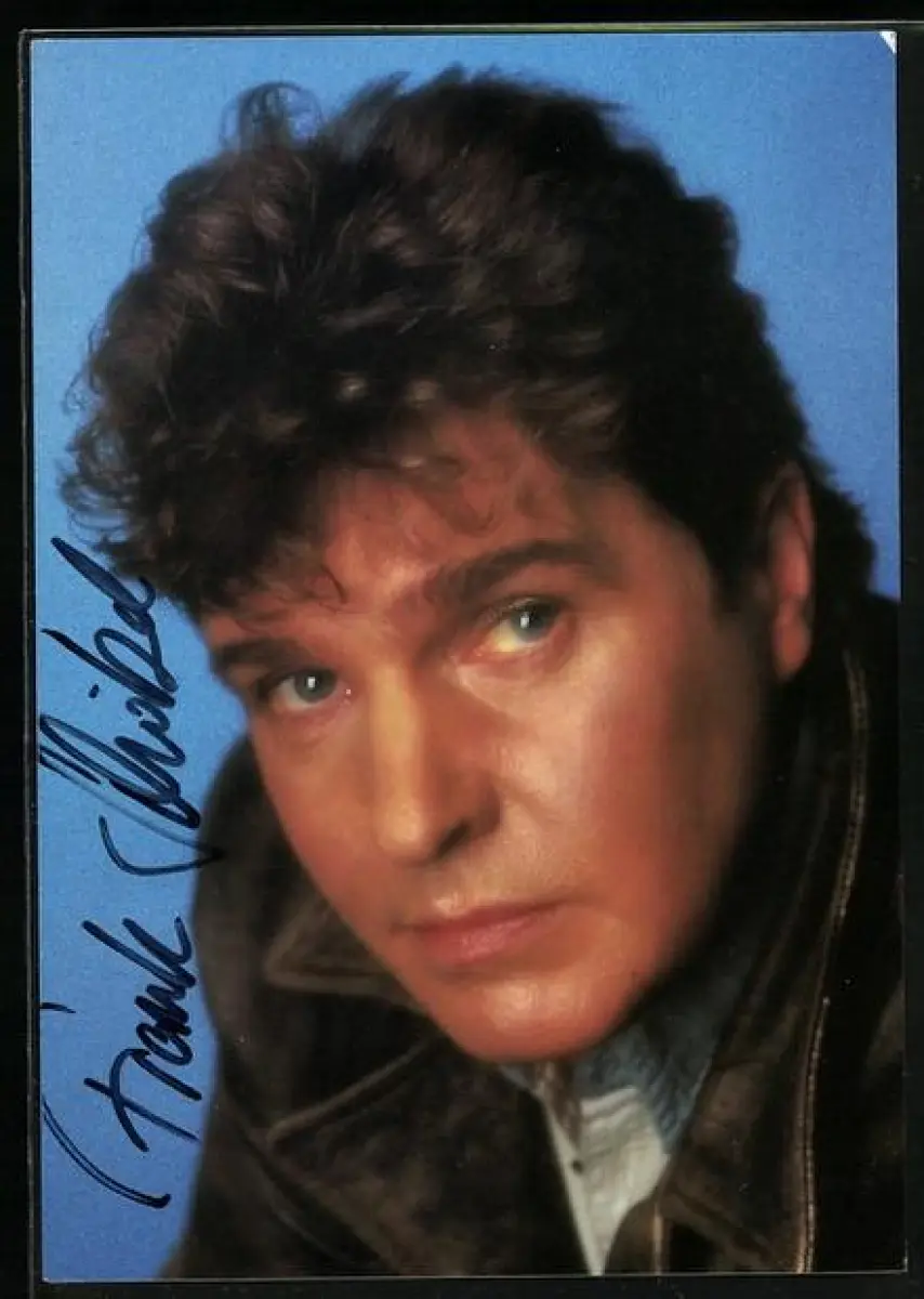AK Musiker Frank Schöbel vor blauem Hintergrund, Autograph