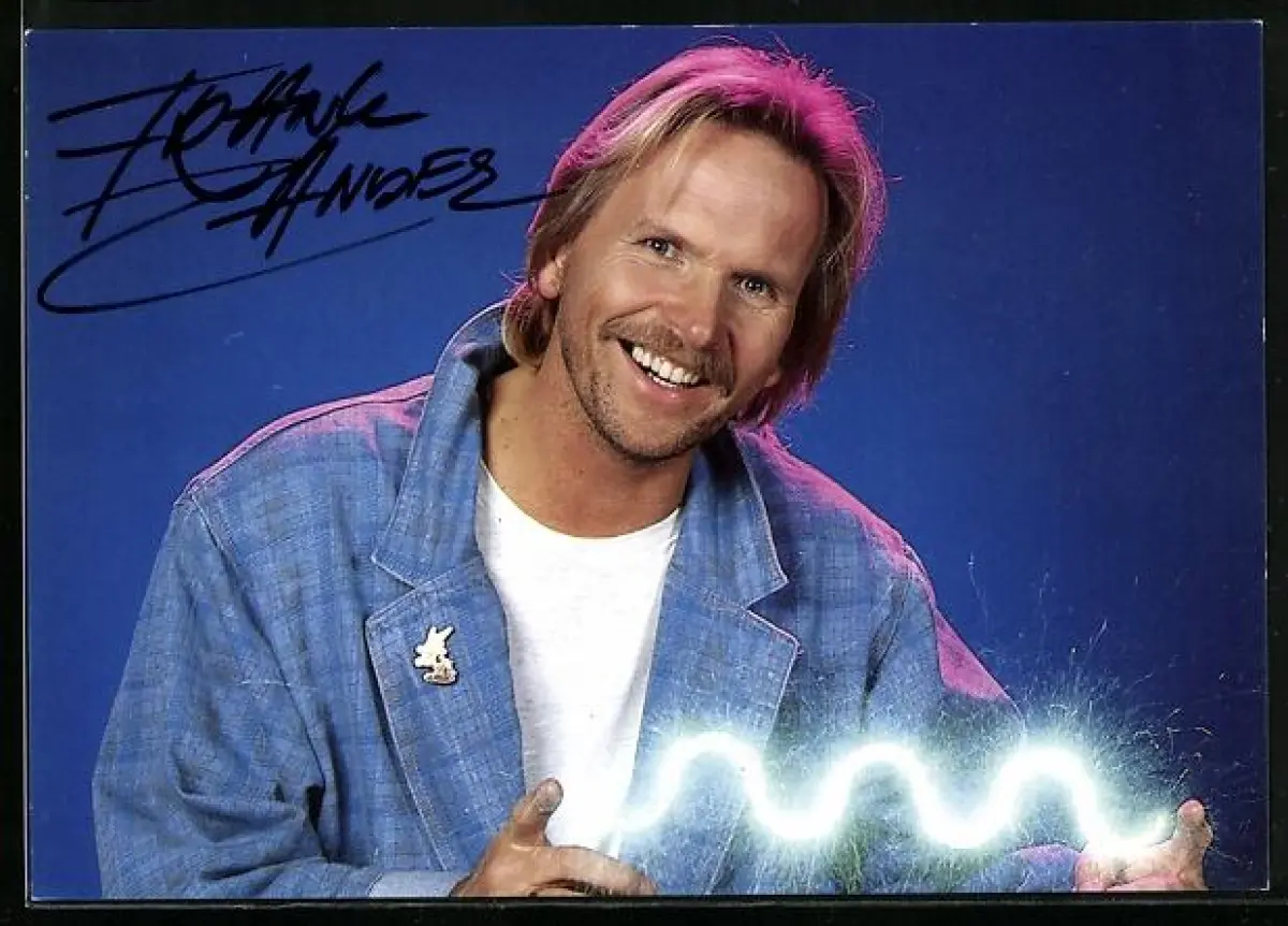 AK Musiker Frank Zander mit strahlendem Lächeln, Autograph