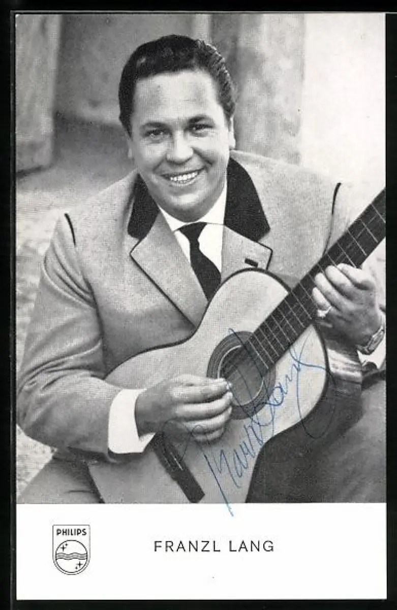 AK Musiker Franzl Lang mit Gitarre, Autograph