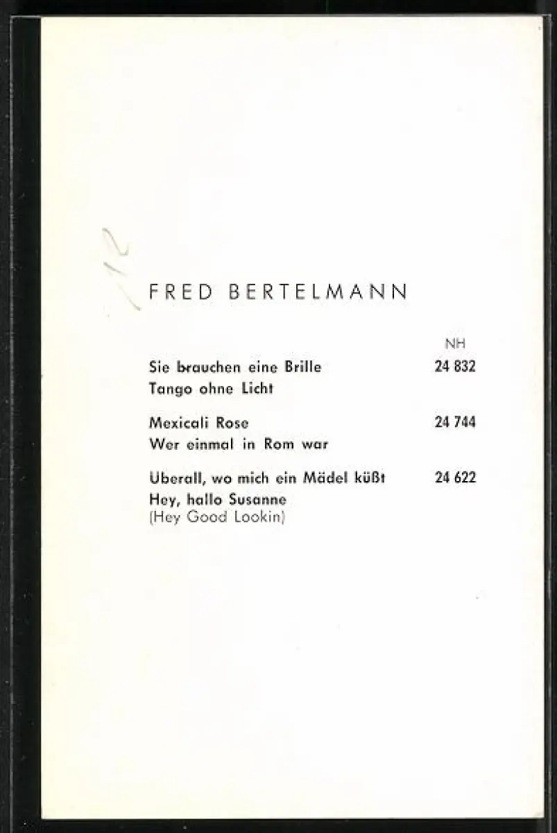 AK Musiker Fred Bertelmann in einem weissen Hemd, Autograph