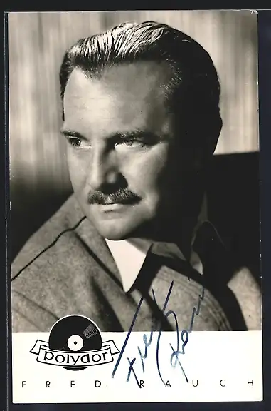 AK Musiker Fred Rauch mit Schnurrbart in Nahaufnahme, mit Autograph
