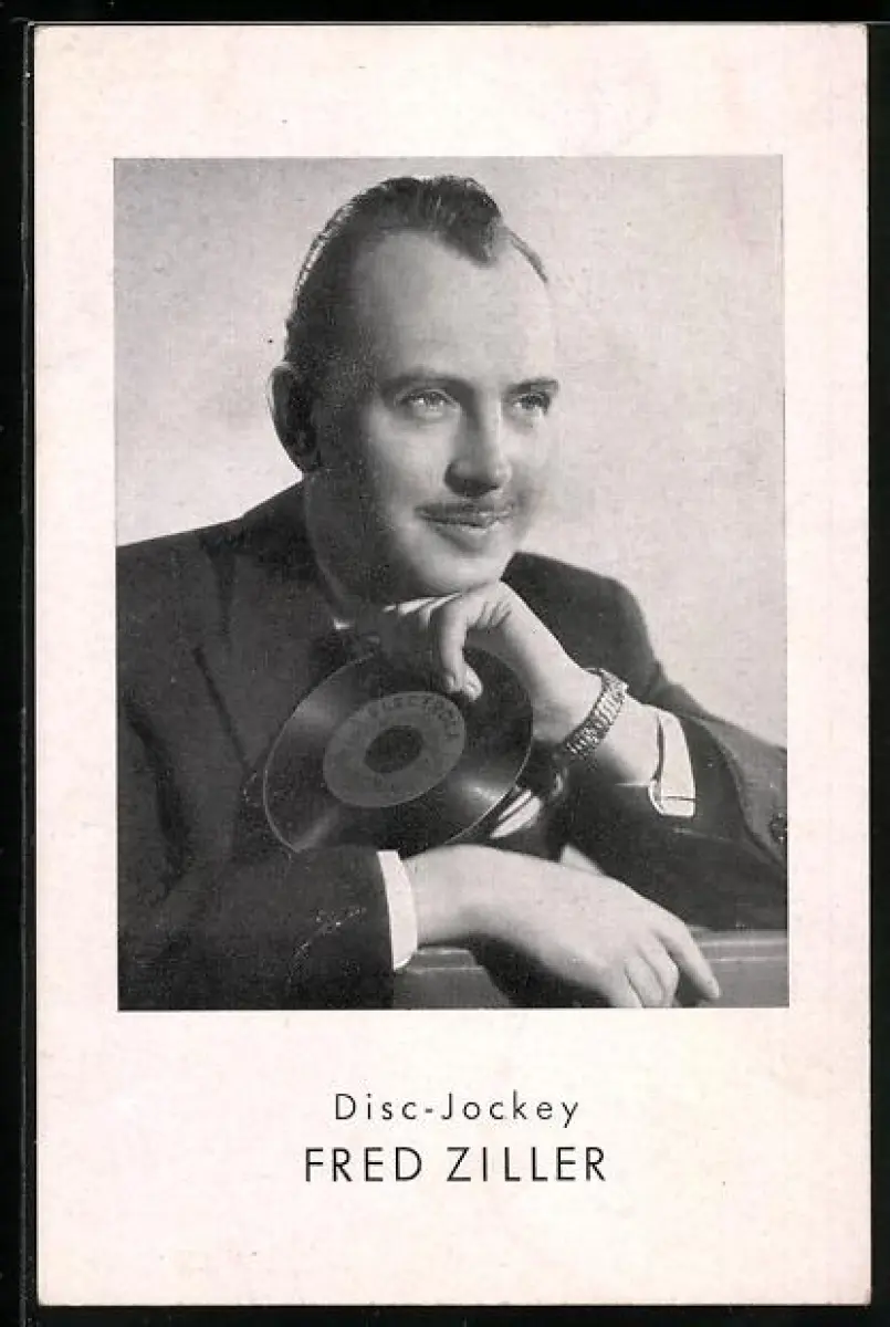 AK Musiker Fred Ziller mit einer 7 Schallplatte in der Hand