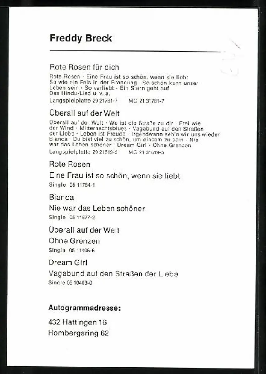AK Musiker Freddy Breck lächelt charmant in die Kamera, Autograph