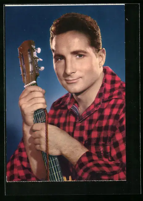 AK Musiker Freddy Quinn im rot-karierten Hemd mit Gitarre