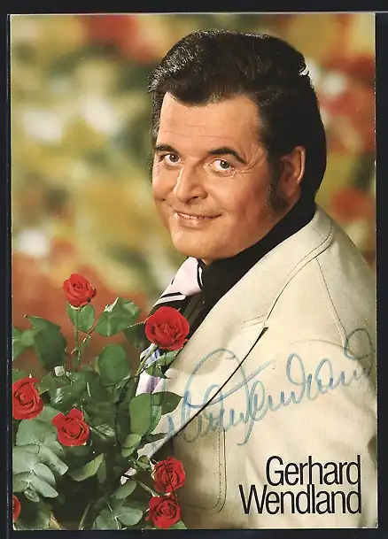 AK Musiker Gerhard Wendland im Anzug und Rosen, mit original Autograph