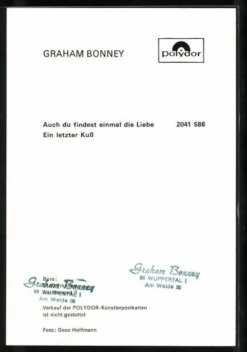 AK Musiker Graham Bonney in die Ferne blickend, Autograph