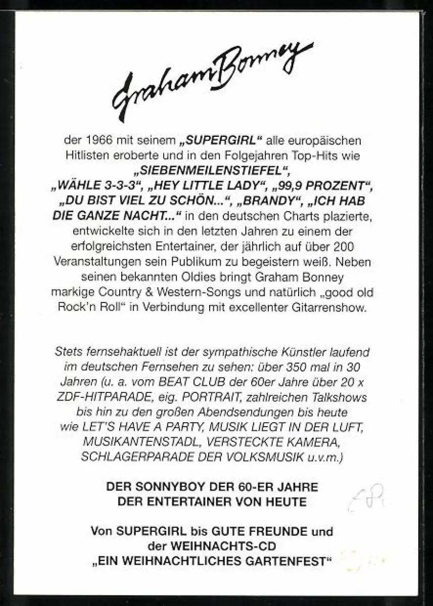 AK Musiker Graham Bonney mit E-Gitarre, Autograph