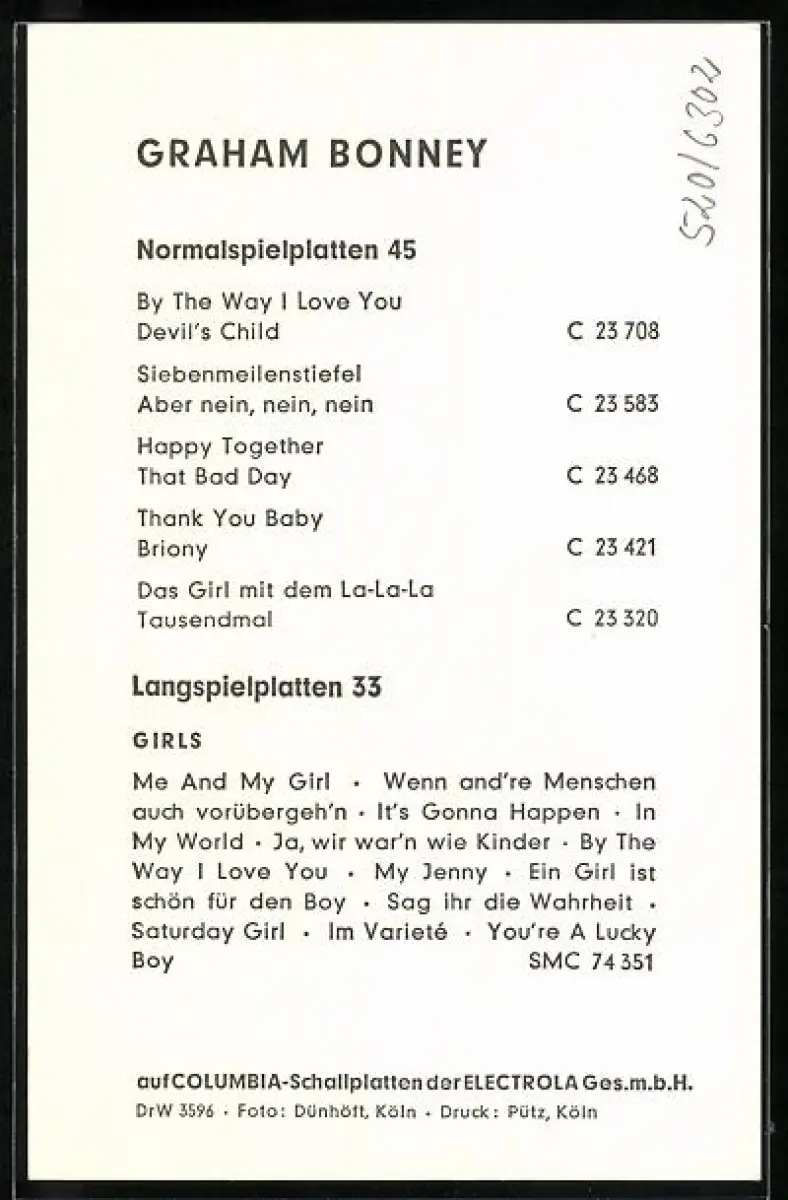 AK Musiker Graham Bonney mit Topfhaarschnitt und gestreiftem Hemd, Autograph