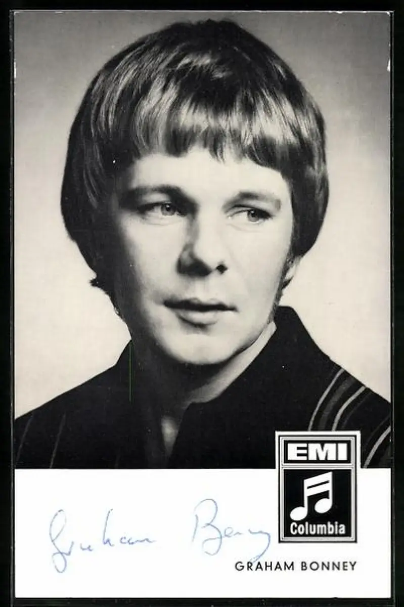 AK Musiker Graham Bonney mit Topfhaarschnitt und gestreiftem Hemd, Autograph