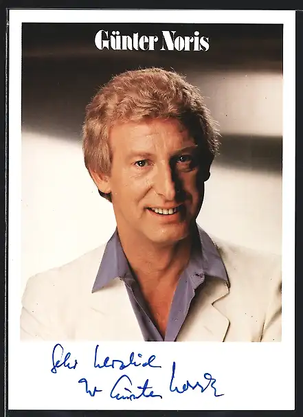 AK Musiker Günter Noris in weissem Anzug, Autograph