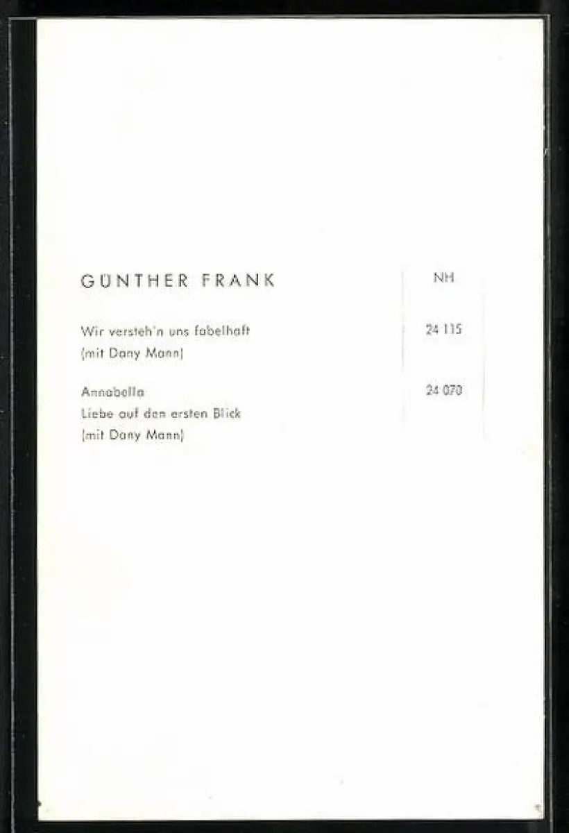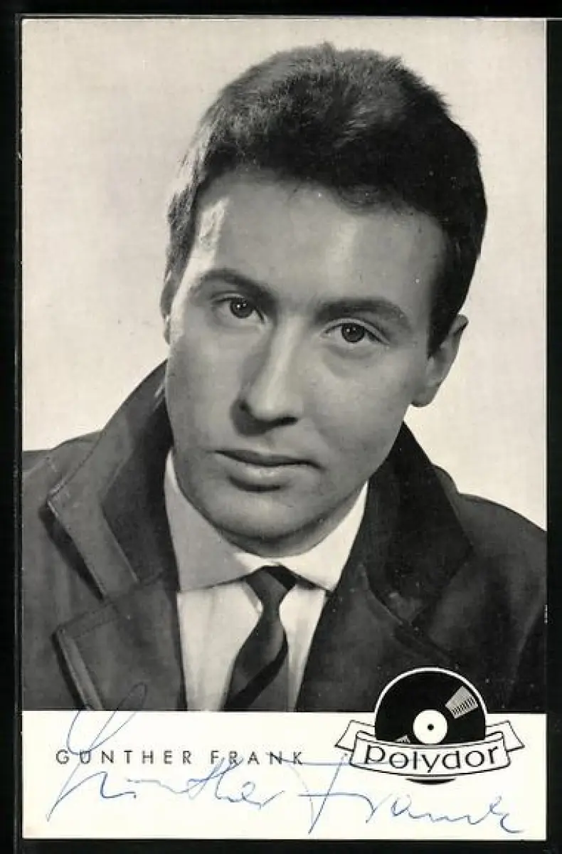 AK Musiker Günther Frank blickt den Betrachter an, Autograph