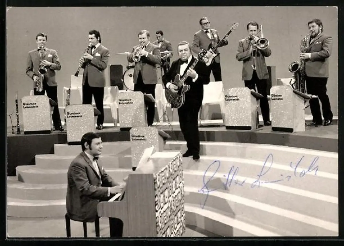 AK Musiker Günther Leimstoll mit verschiedenen Instrumenten, Autogramm