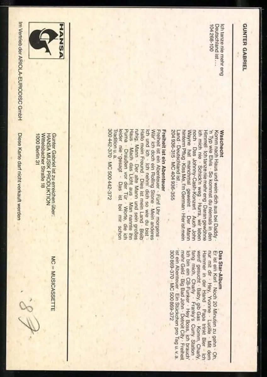AK Musiker Gunter Gabriel mit Gitarre, Autograph