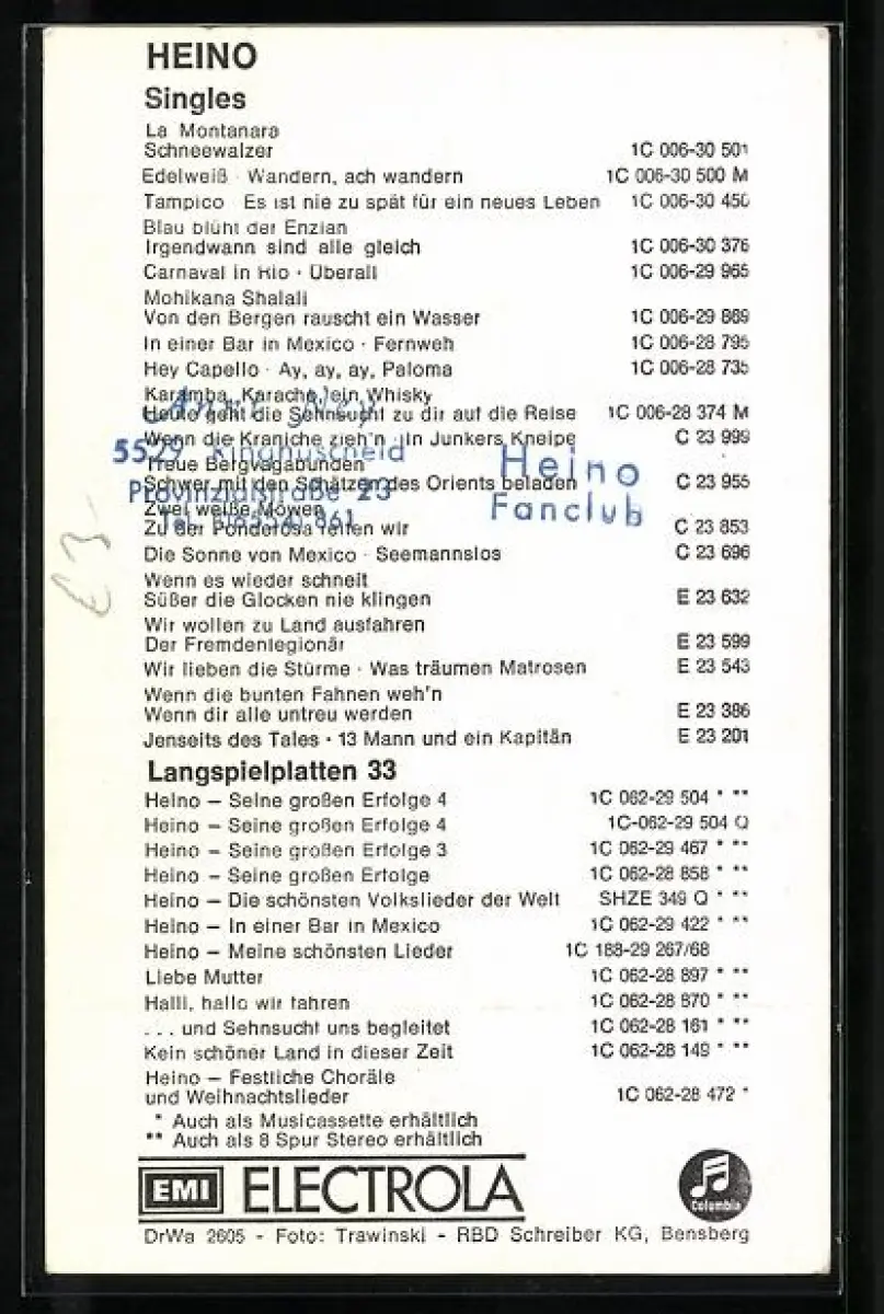 AK Musiker Heino mit Brille porträtiert, Autograph