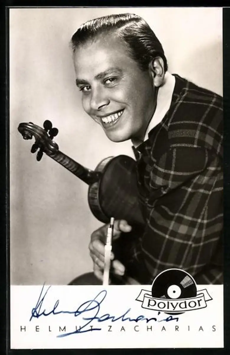 AK Musiker Helmut Zacharias mit Geige, Autograph