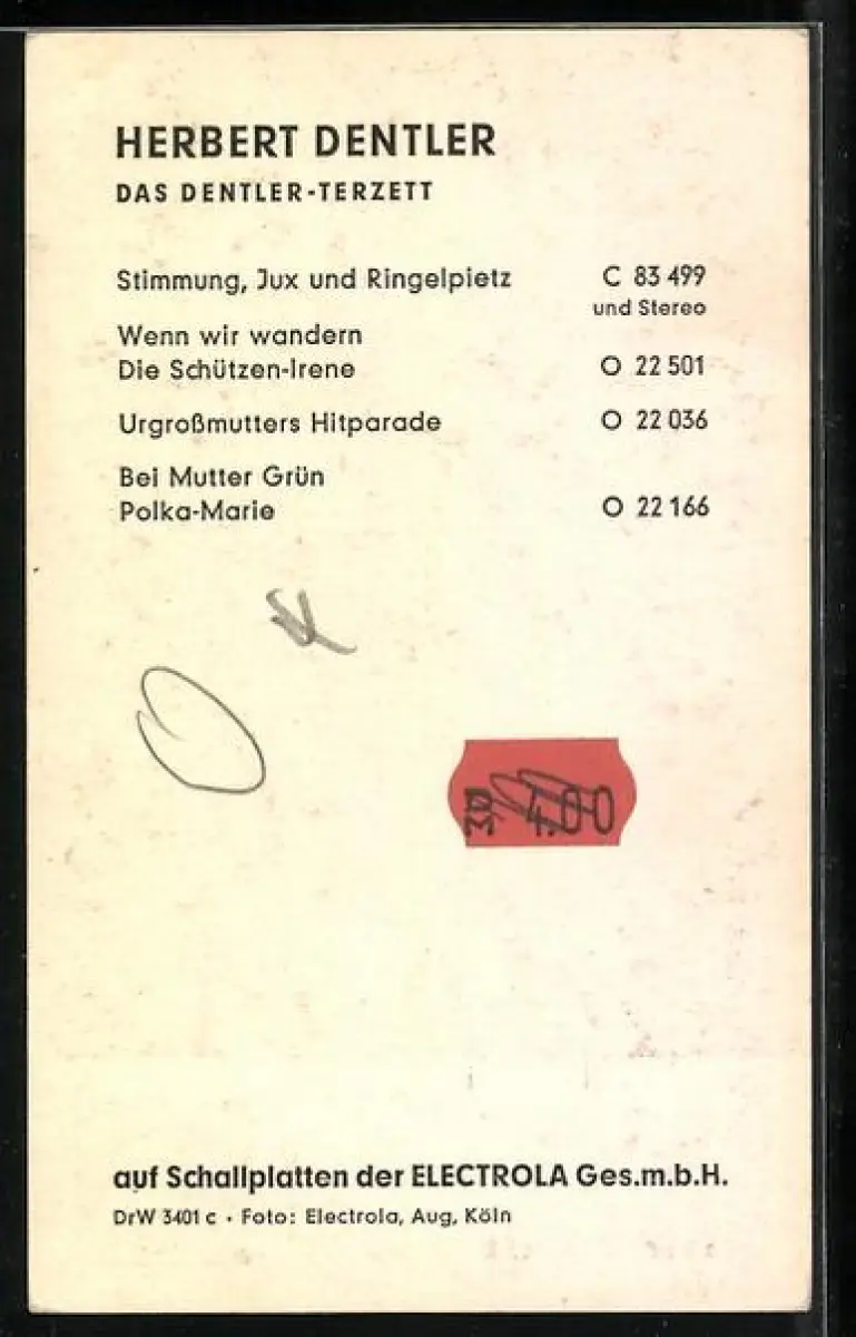 AK Musiker Herbert Dentler im Portrait, Autograph