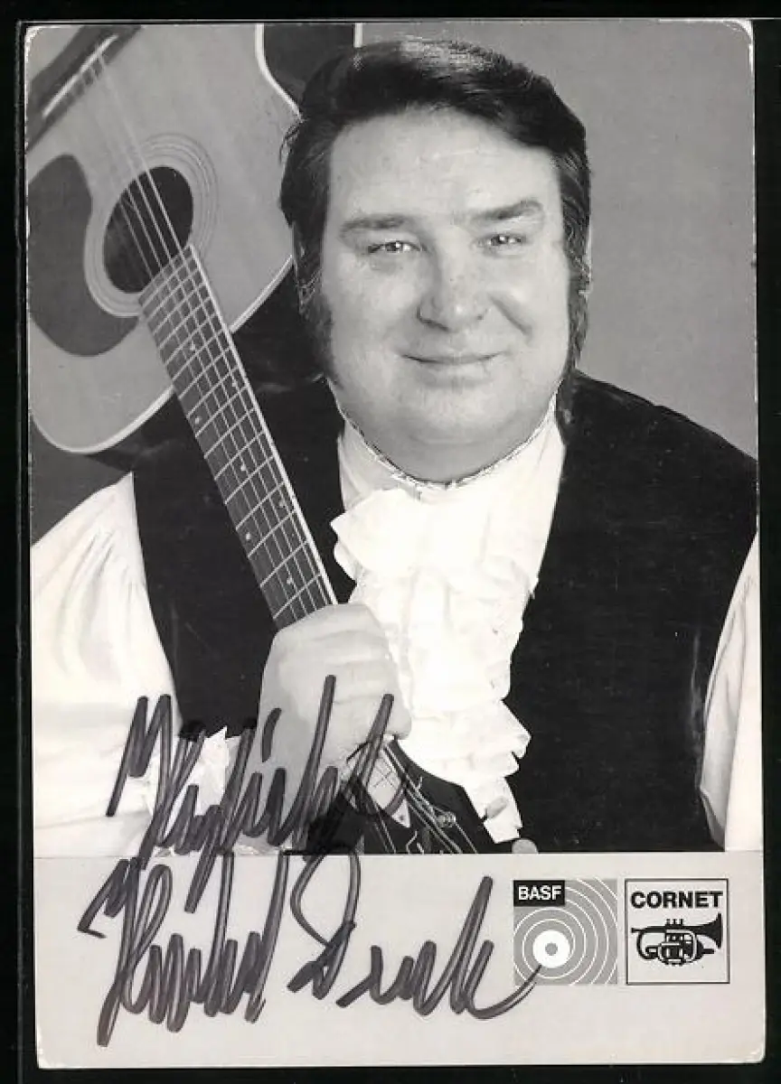 AK Musiker Herbert Dentler mit Gitarre, Autograph