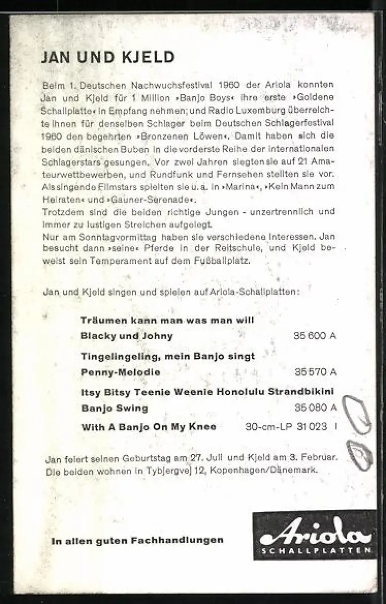 AK Musiker Jan und Kjeld mit ihren Banjos, Autograph