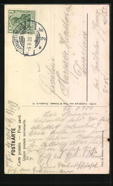 alte Ansichtskarte, gelaufen 1909, guter Zustand