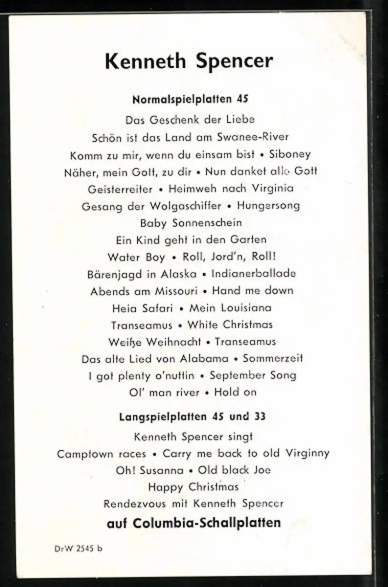 AK Musiker Kenneth Spencer mit breitem Lächeln, Autograph
