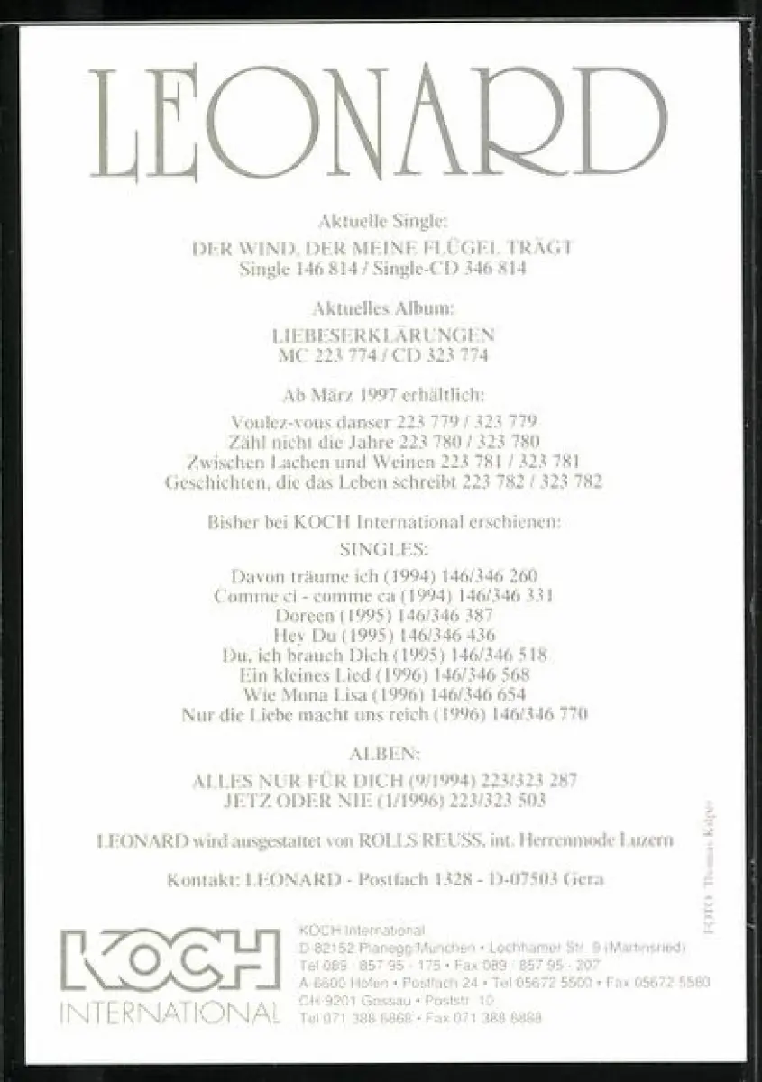 AK Musiker Leonard vor weissem Hintergrund, Autograph