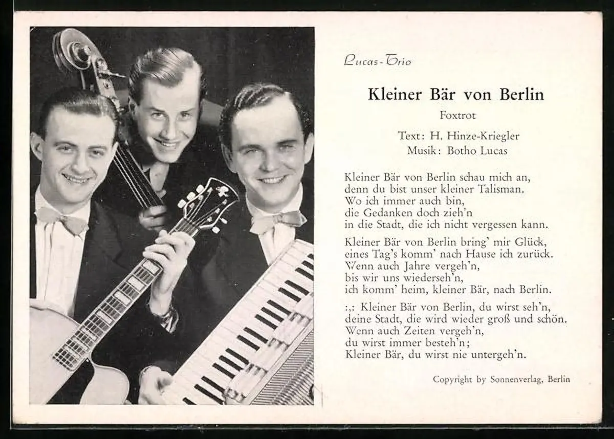 AK Musiker Lucas-Trio mit Instrumenten und Liedtext Kleiner Bär von Berlin