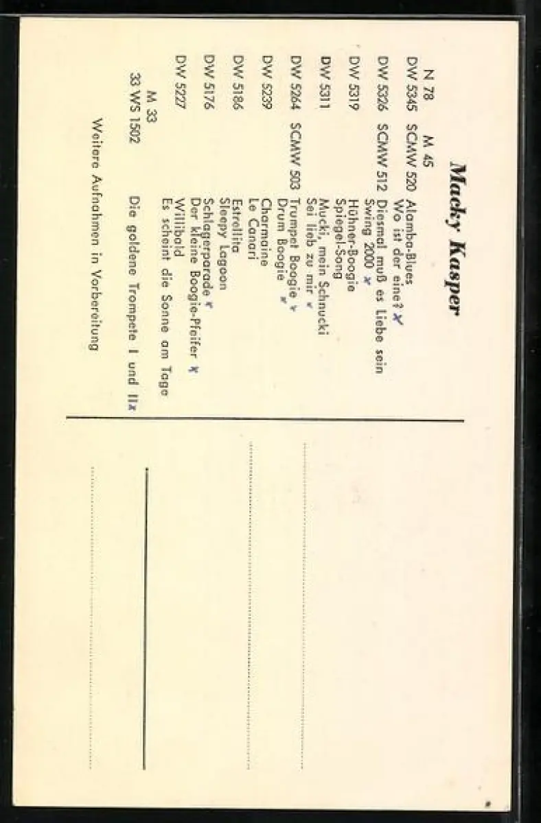 AK Musiker Macky Kaspar Trompete spielend portraitiert, Autograph