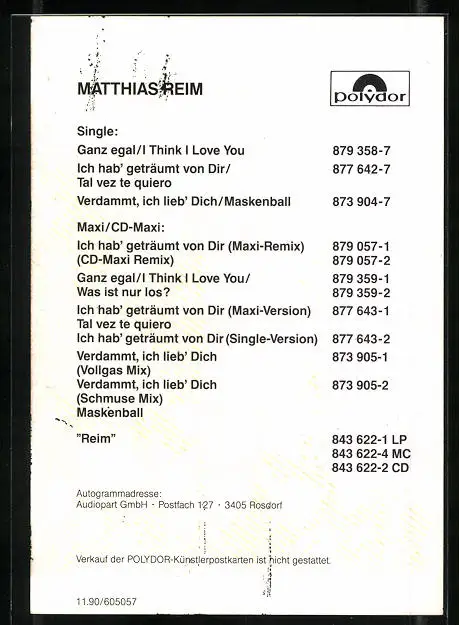 AK Musiker Matthias Reim im Porträt, original Autograph