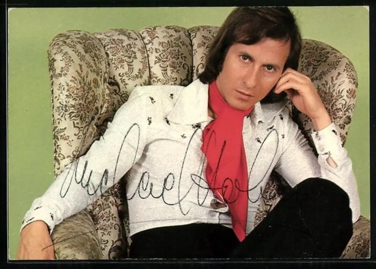 AK Musiker Michael Holm sitzt nachdenklich in einem Sessel, Autograph