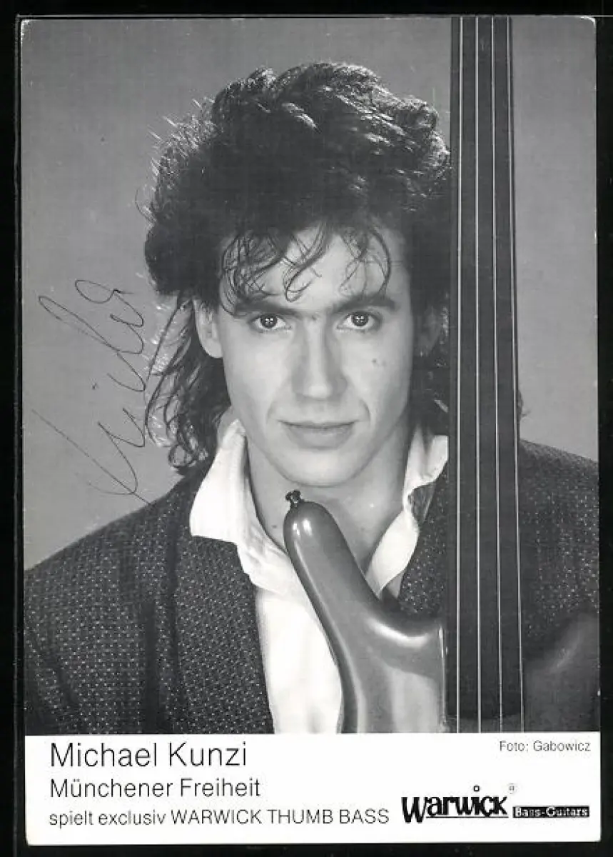 AK Musiker Michael Kunzi mit E-Gitarre, Autograph