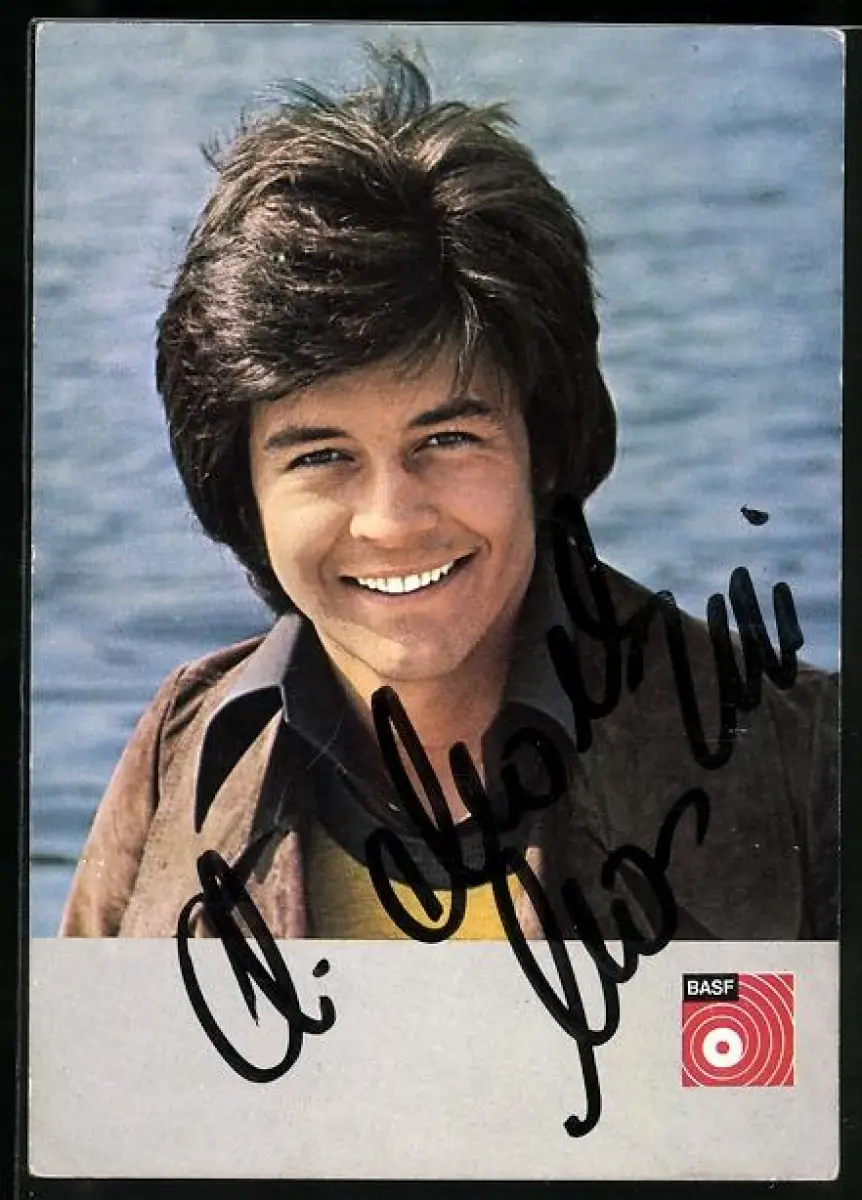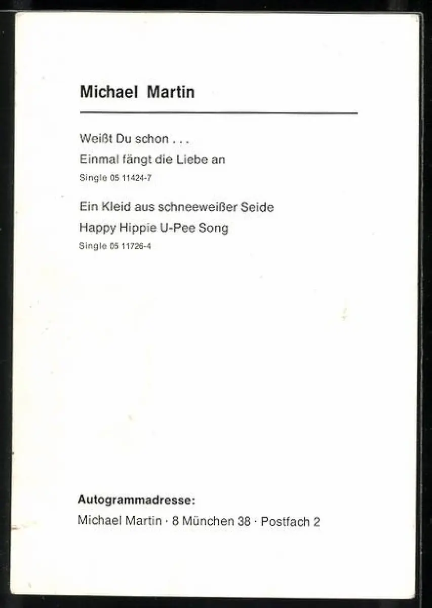 AK Musiker Michael Martin lächelnd im gelben Pullover, Autograph