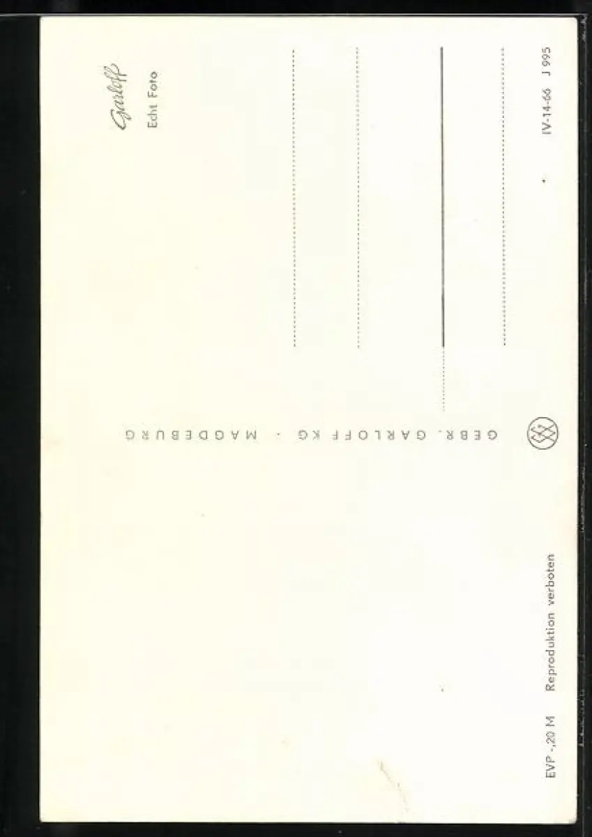 Personenbezogene Daten auf der Rückseite der Karte wurden durch blauen Textmarker unkenntlich gemacht. Die blauen Stellen sind auf die Vorderseite durchgeweicht und wirken sich negativ auf das Postkartenfoto aus